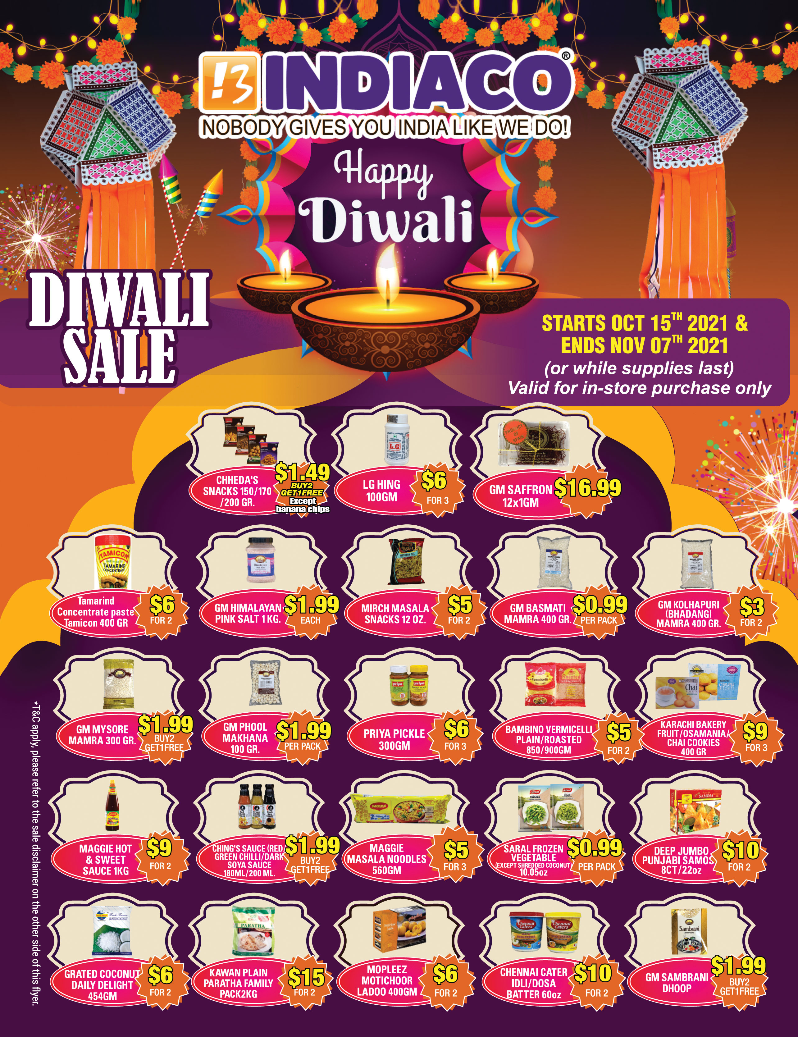 Patel Brothers Diwali Sale Flyer - 112021. SALE starts from 10-29-2020 through 11-3-2020. Based grocery retail chain that focuses on flavors and foods found in in the Indian sub-continent and the Middle.